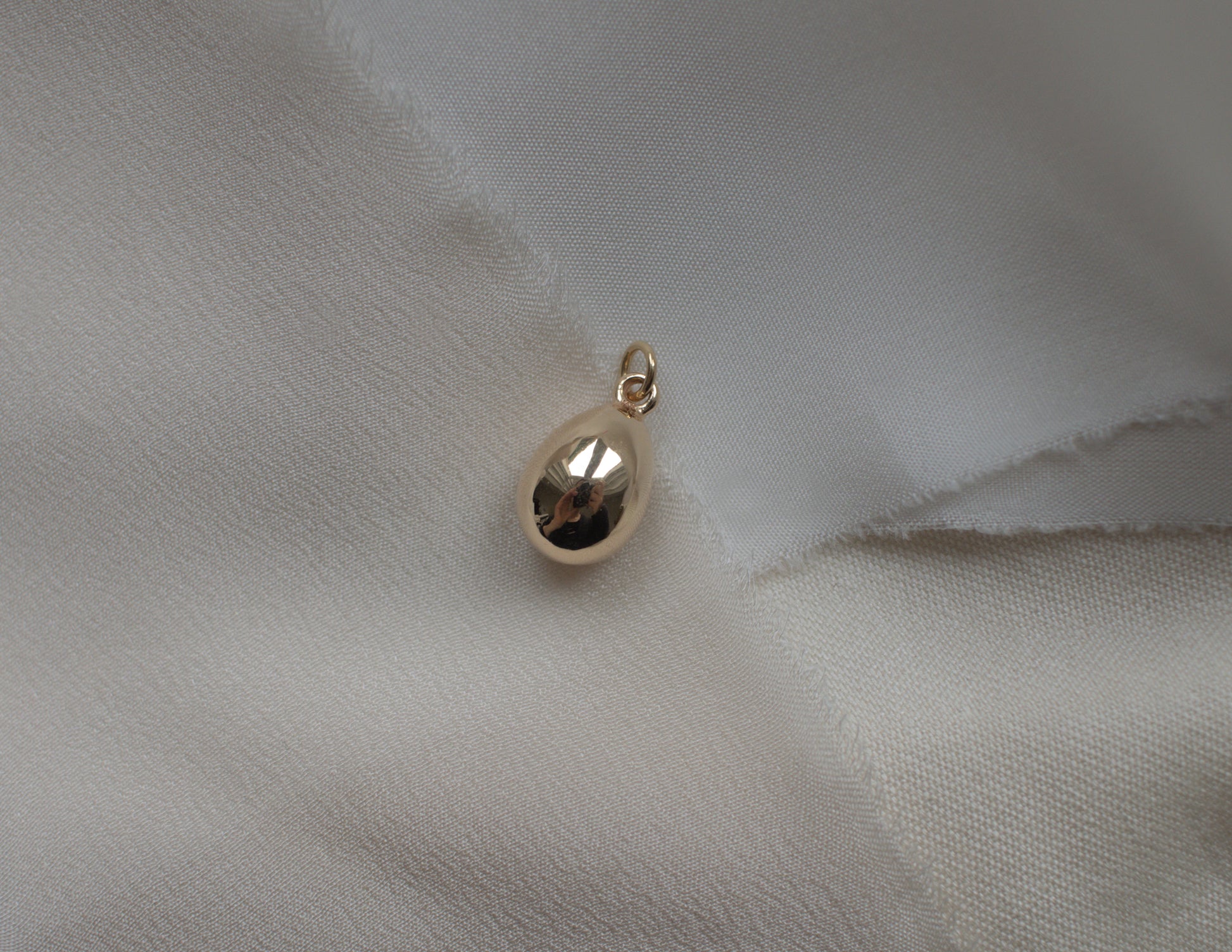This elegant charm has a timeless simplicity that makes it incredibly versatile. The softly rounded egg shape creates a sculptural, tactile form that sits comfortably when worn on a chain or added to a charm bracelet.