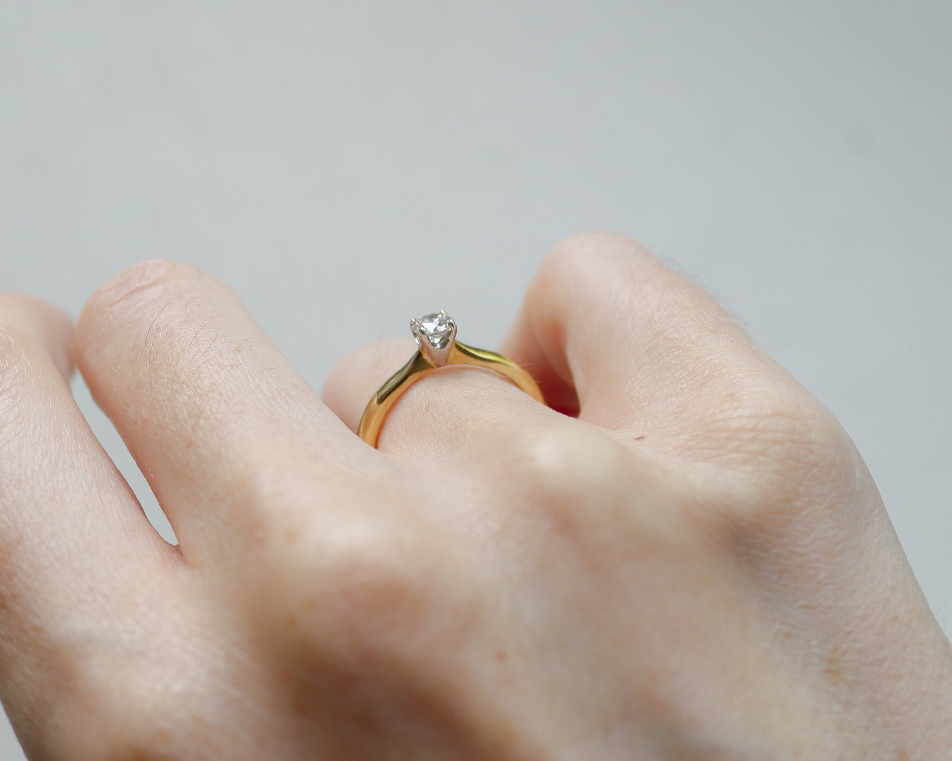 18ct gold Brilliant cut doughnut solitaire ring UK M 1/2
