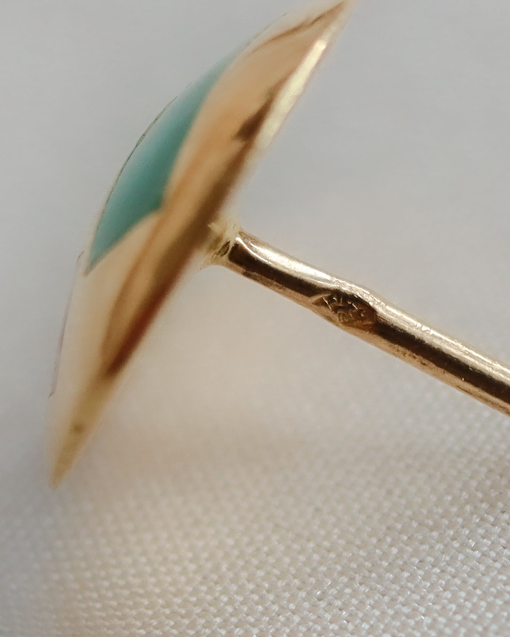 Beautifully crafted and effortlessly stylish, these enamel-accented 18ct gold earrings bring a touch of vintage-inspired elegance and colour to any jewellery collection.