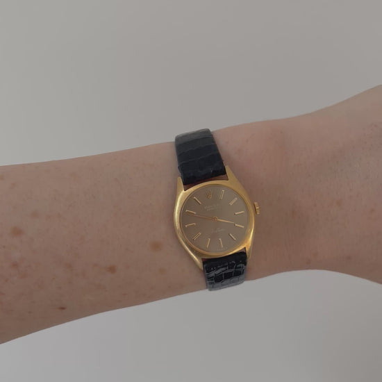 An elegant vintage Rolex Cellini ladies wristwatch, crafted in 18ct yellow gold and dating to 1975.