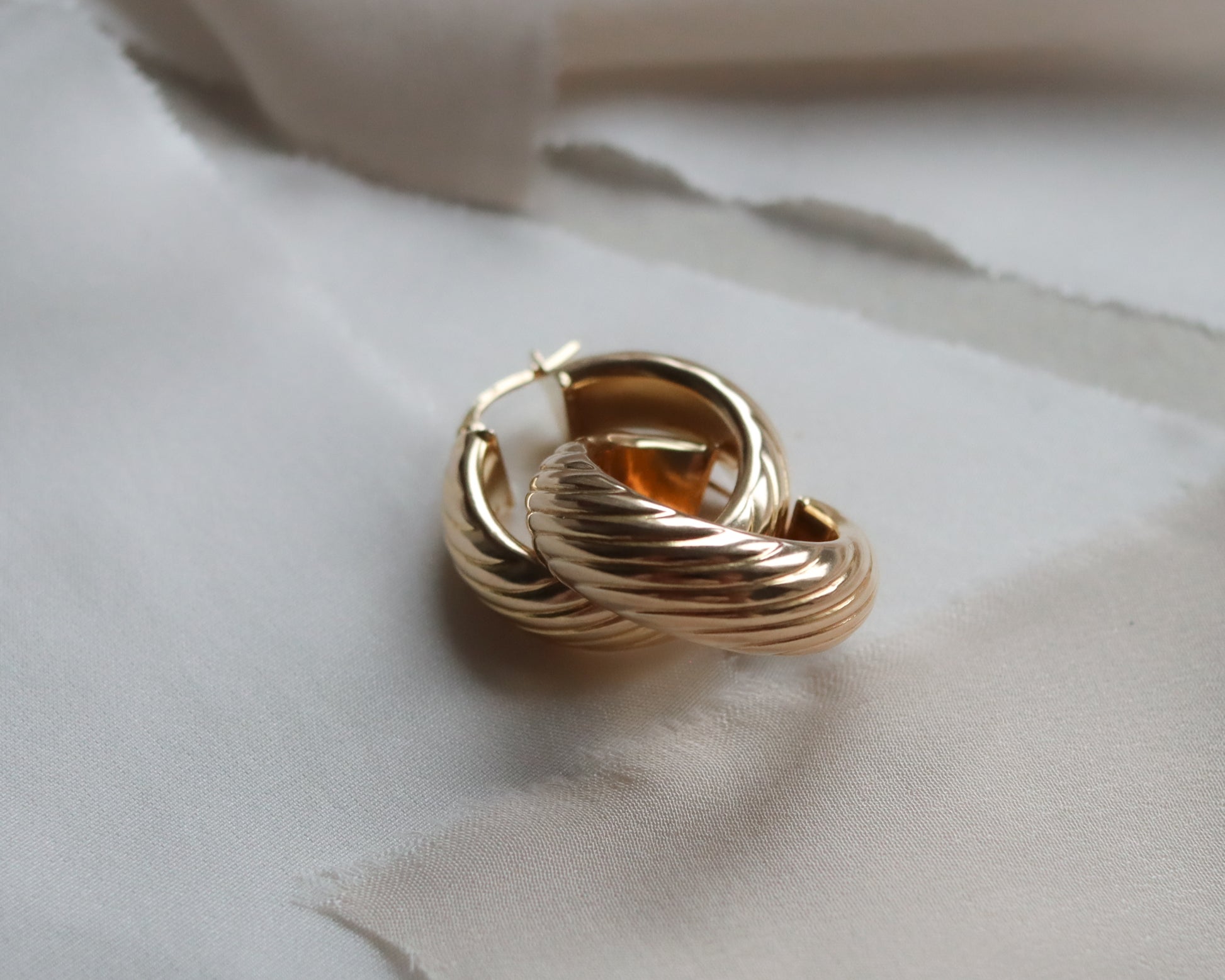 Vintage 9ct Gold Chunky Ribbed Hoop Earrings