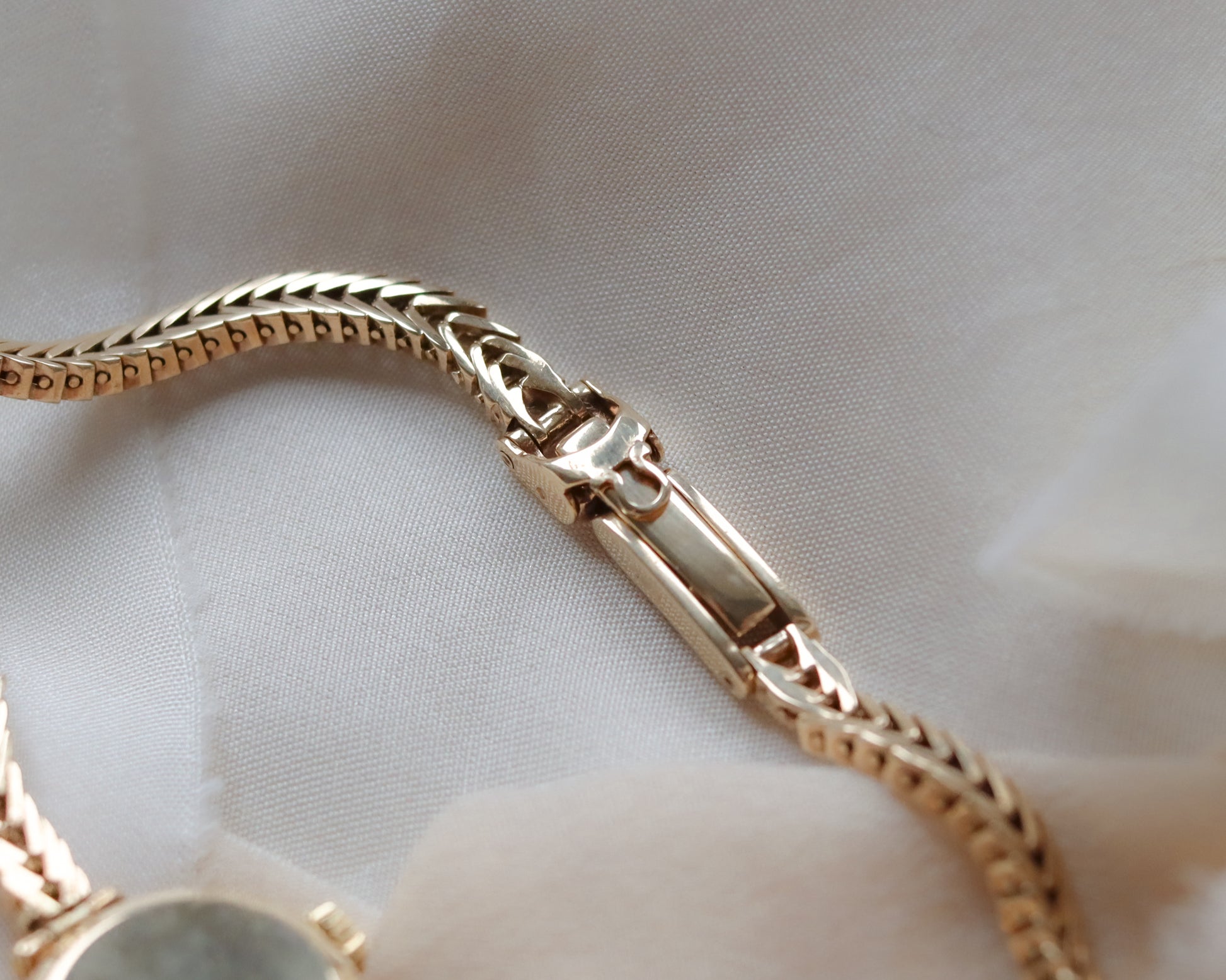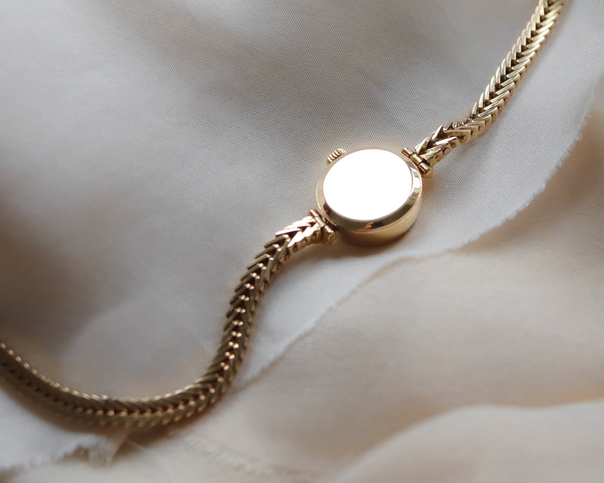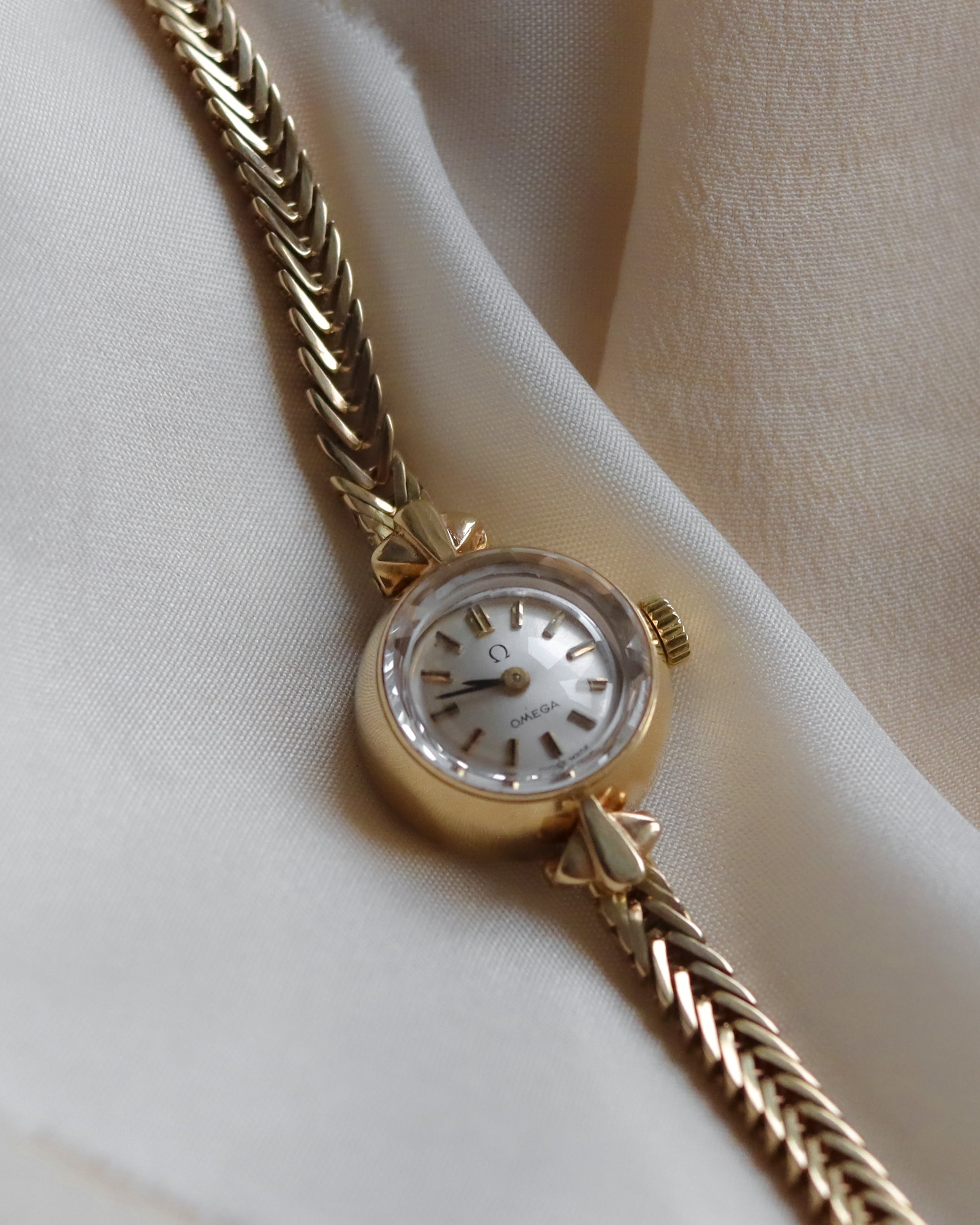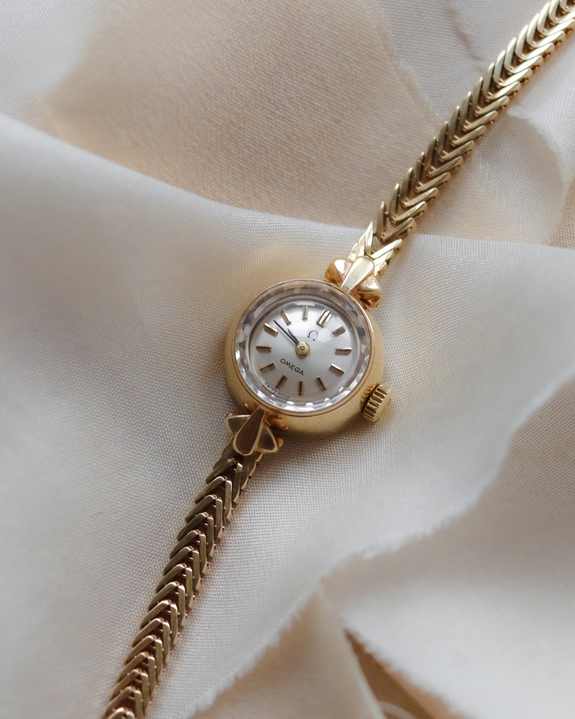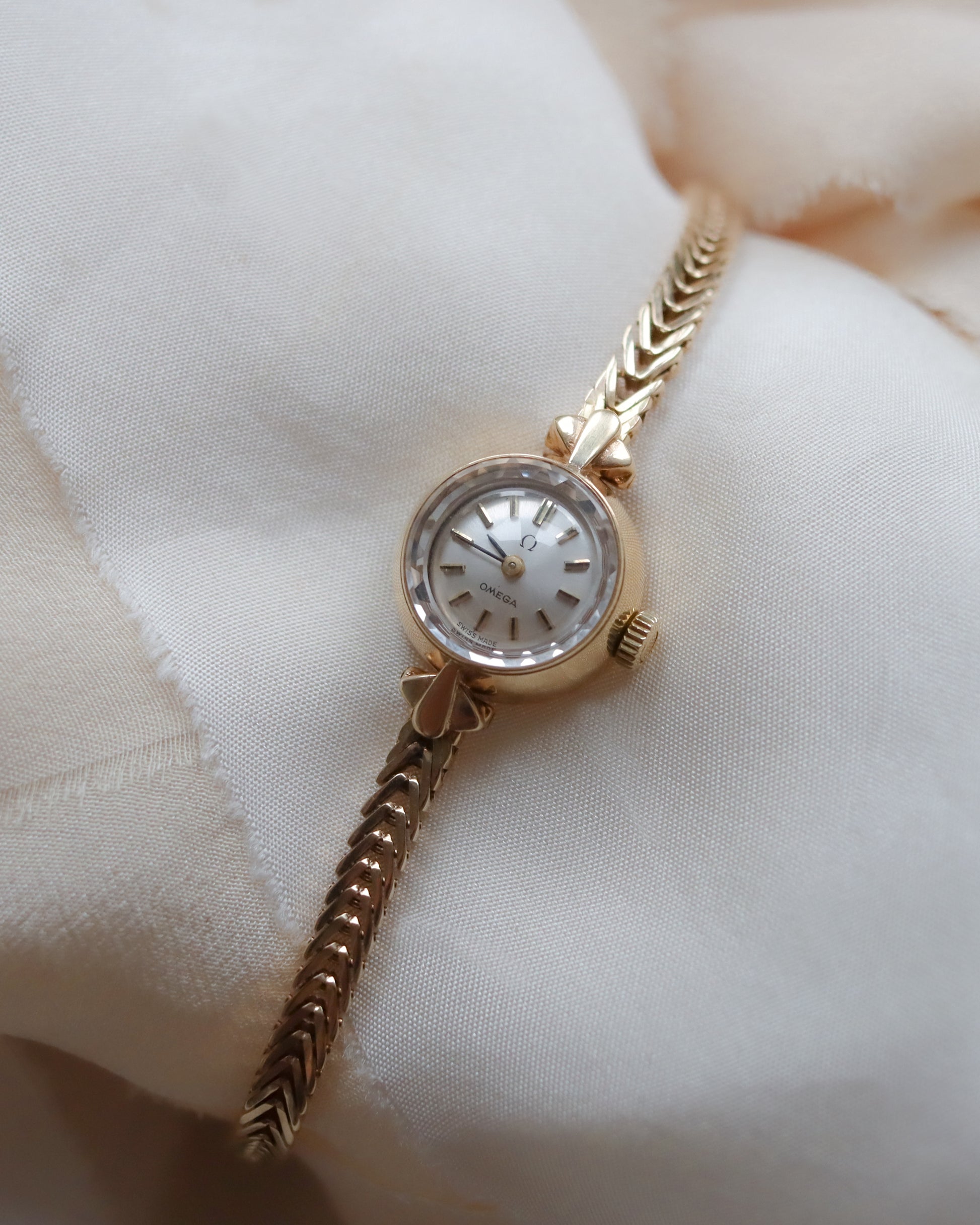 A beautifully crafted vintage Omega ladies watch from 1965, showcasing the brand’s signature elegance and precision. Made entirely from 9ct gold, this refined timepiece features a classic herringbone bracelet and a clean, minimalist dial — a perfect blend of style and sophistication.