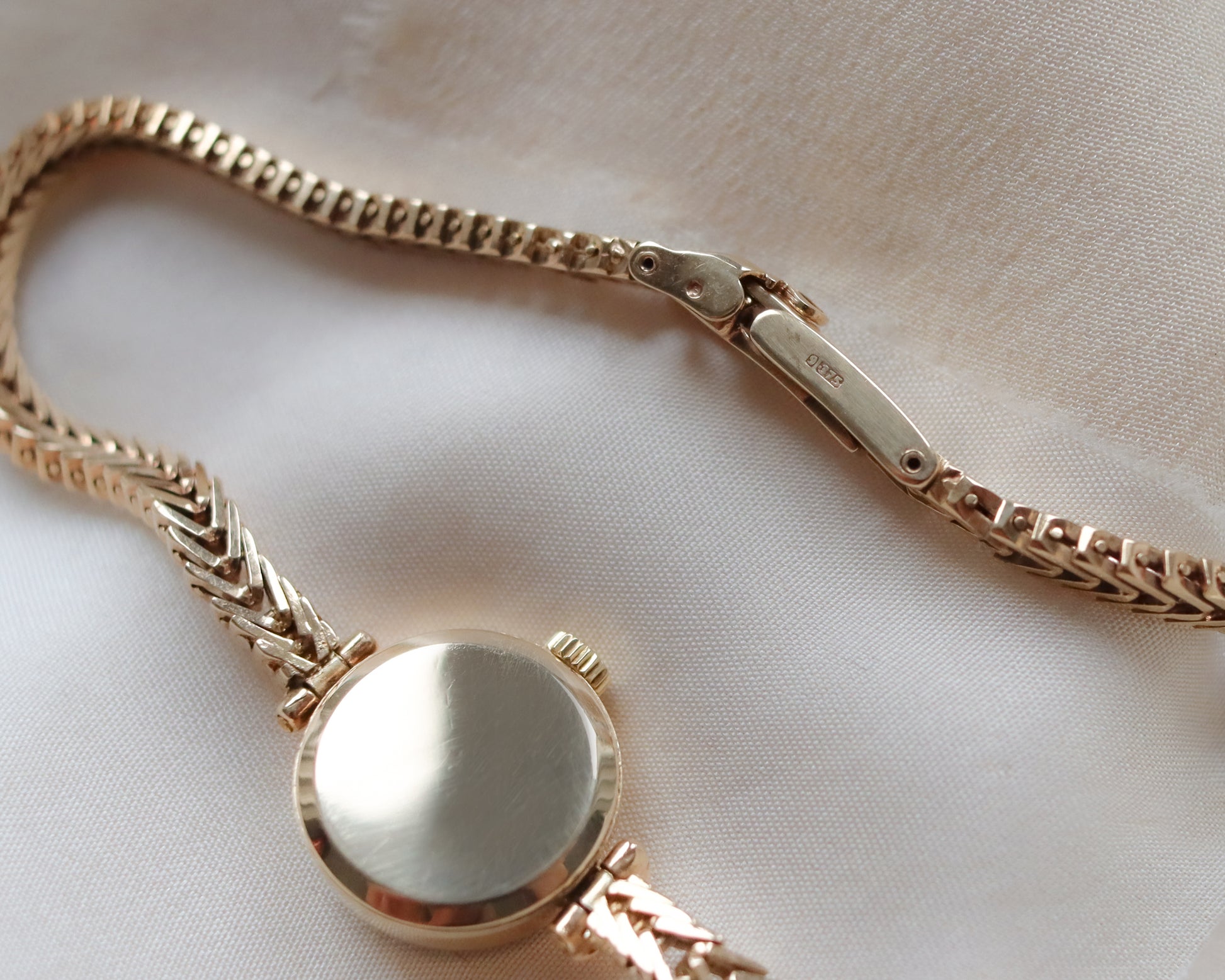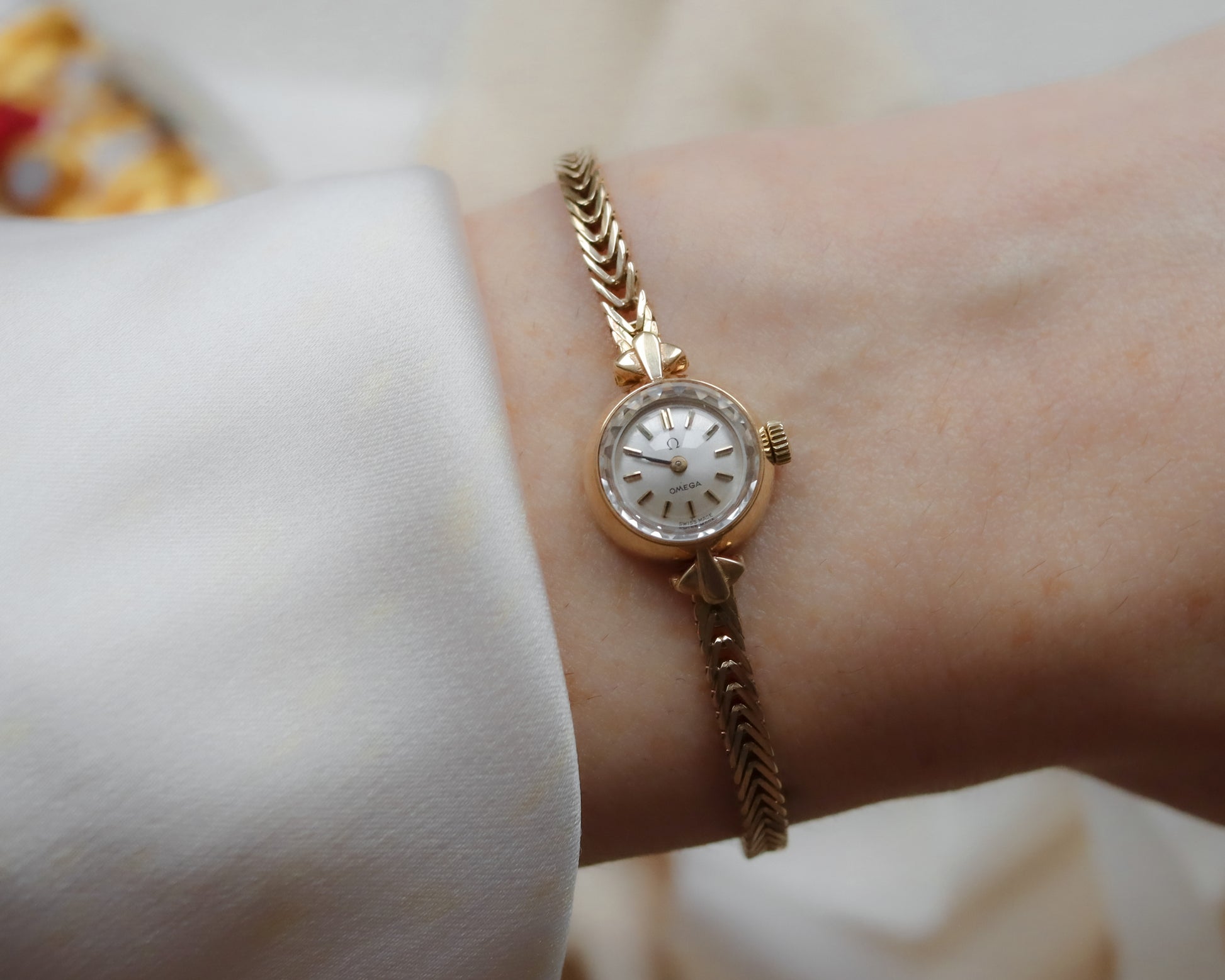 9ct Gold Omega faceted crystal herringbone watch - 1965