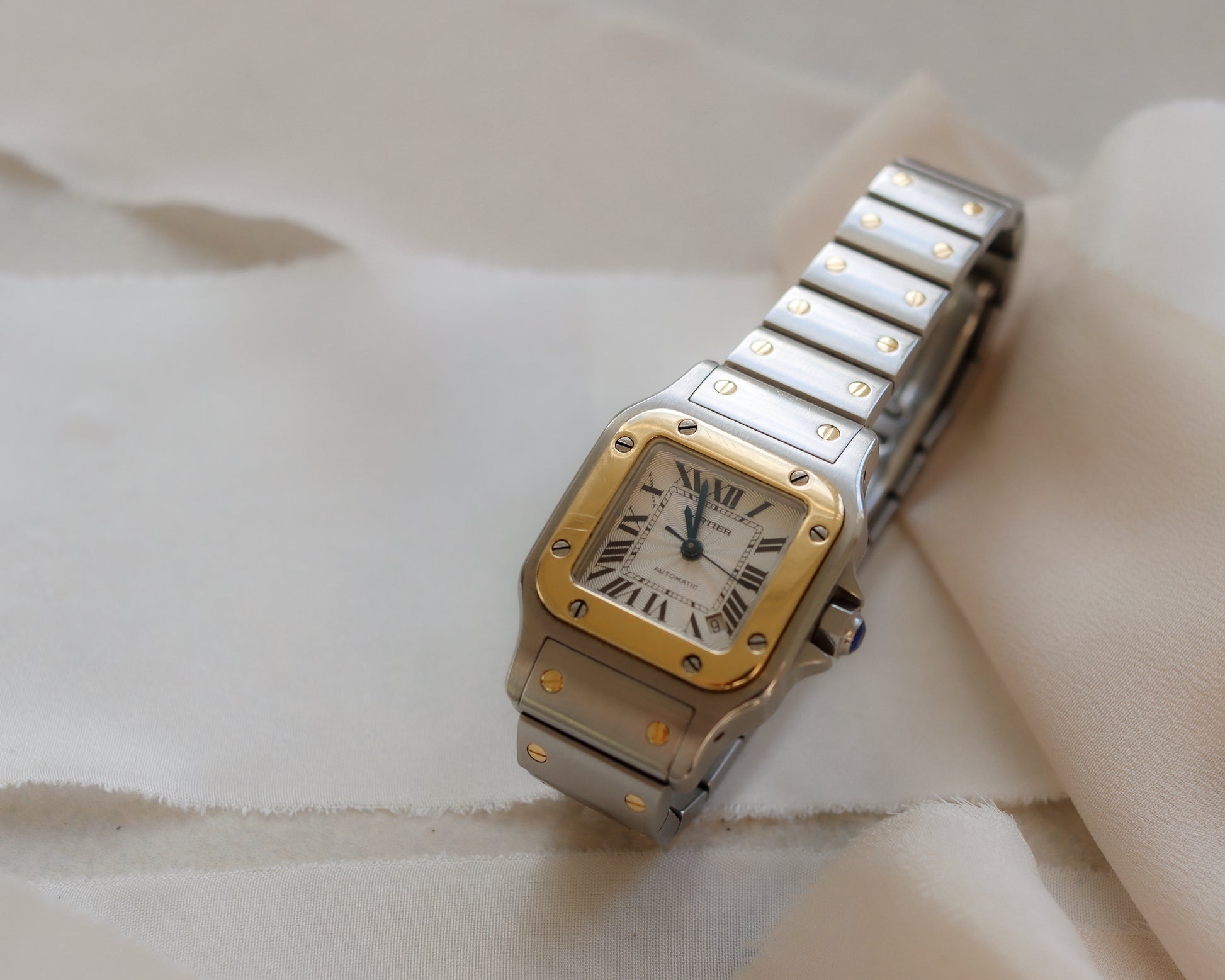 A stylish, versatile, and collectable Santos Galbée — combining Cartier’s signature design cues with a comfortable curved profile and timeless two-tone appeal.