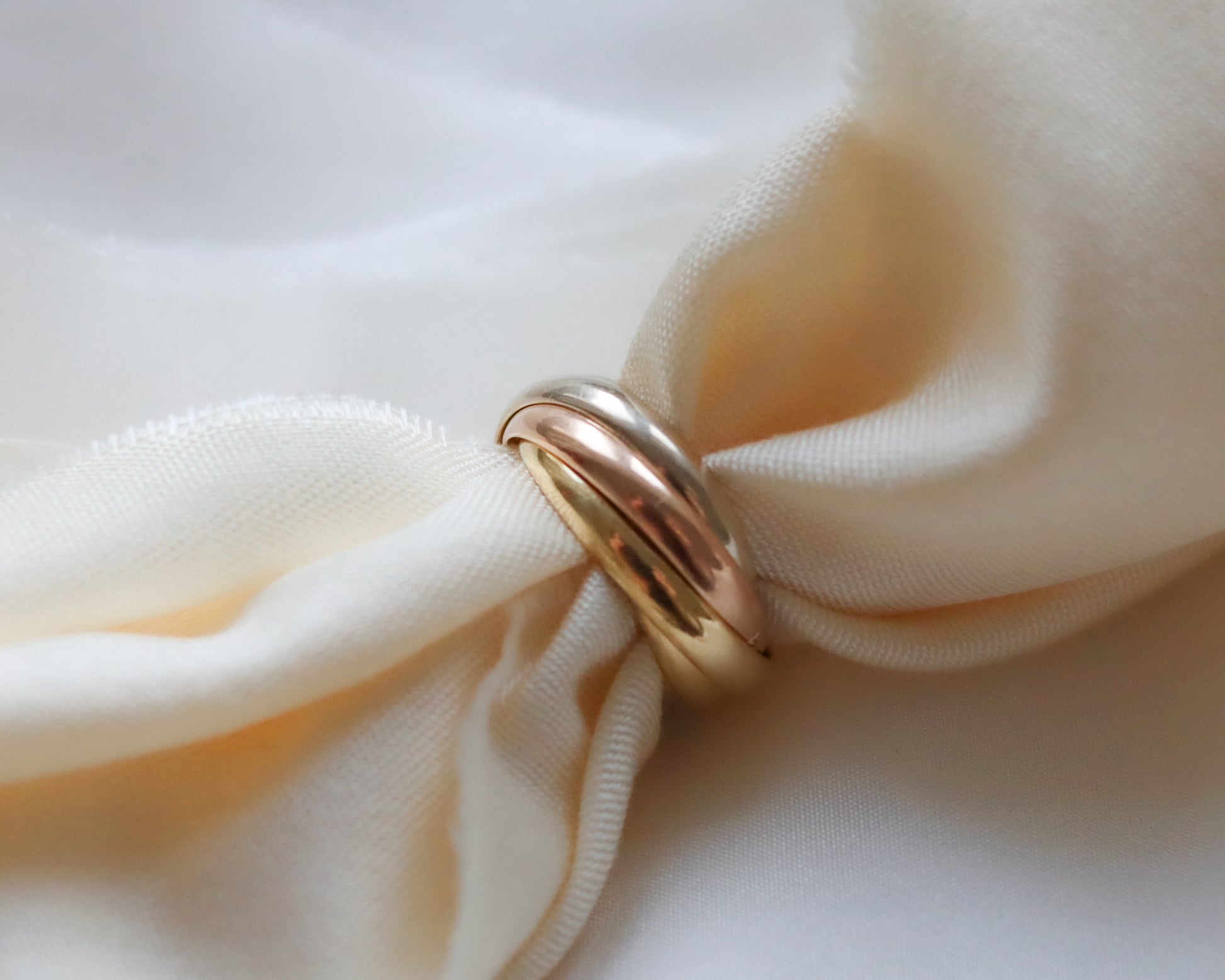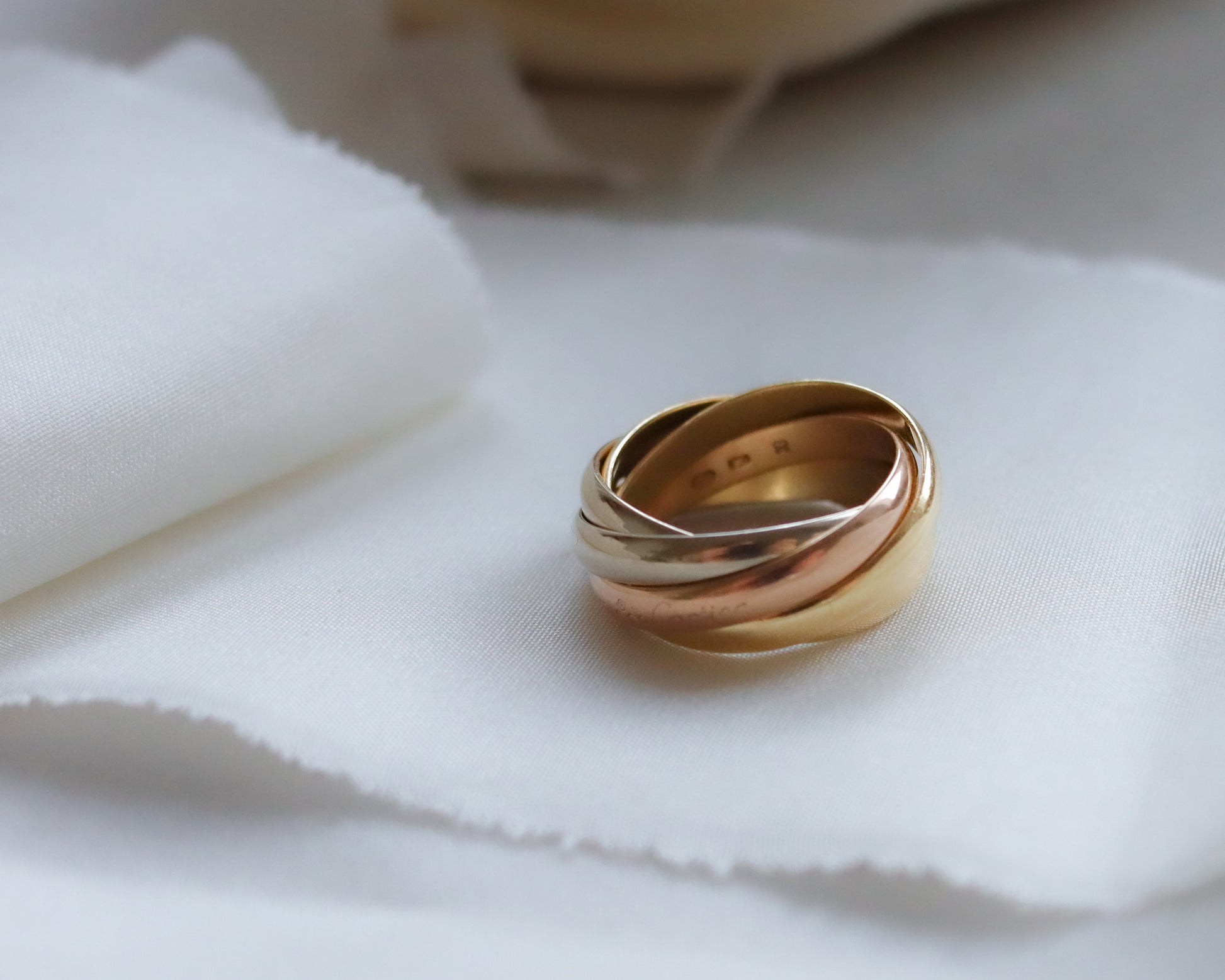 An iconic Cartier Trinity ring, crafted in 18ct yellow, rose, and white gold, and formed from five interlocking tricolour bands that move fluidly together on the finger. A timeless symbol of love, friendship, and fidelity, the Trinity design remains one of Cartier’s most celebrated and enduring creations.