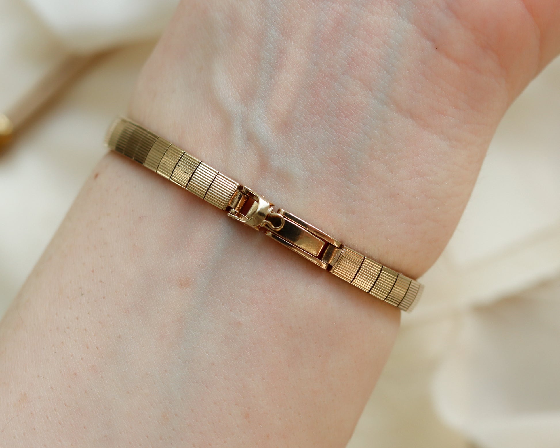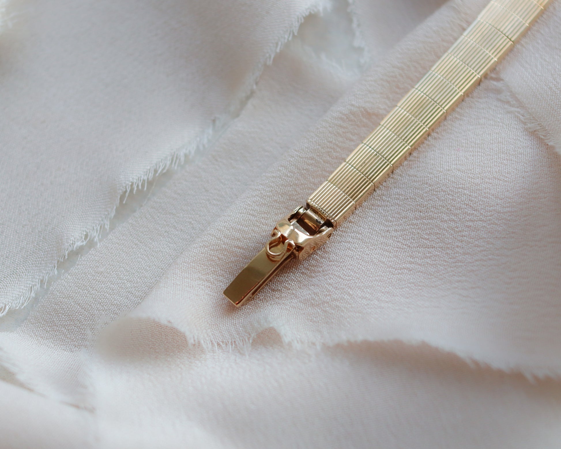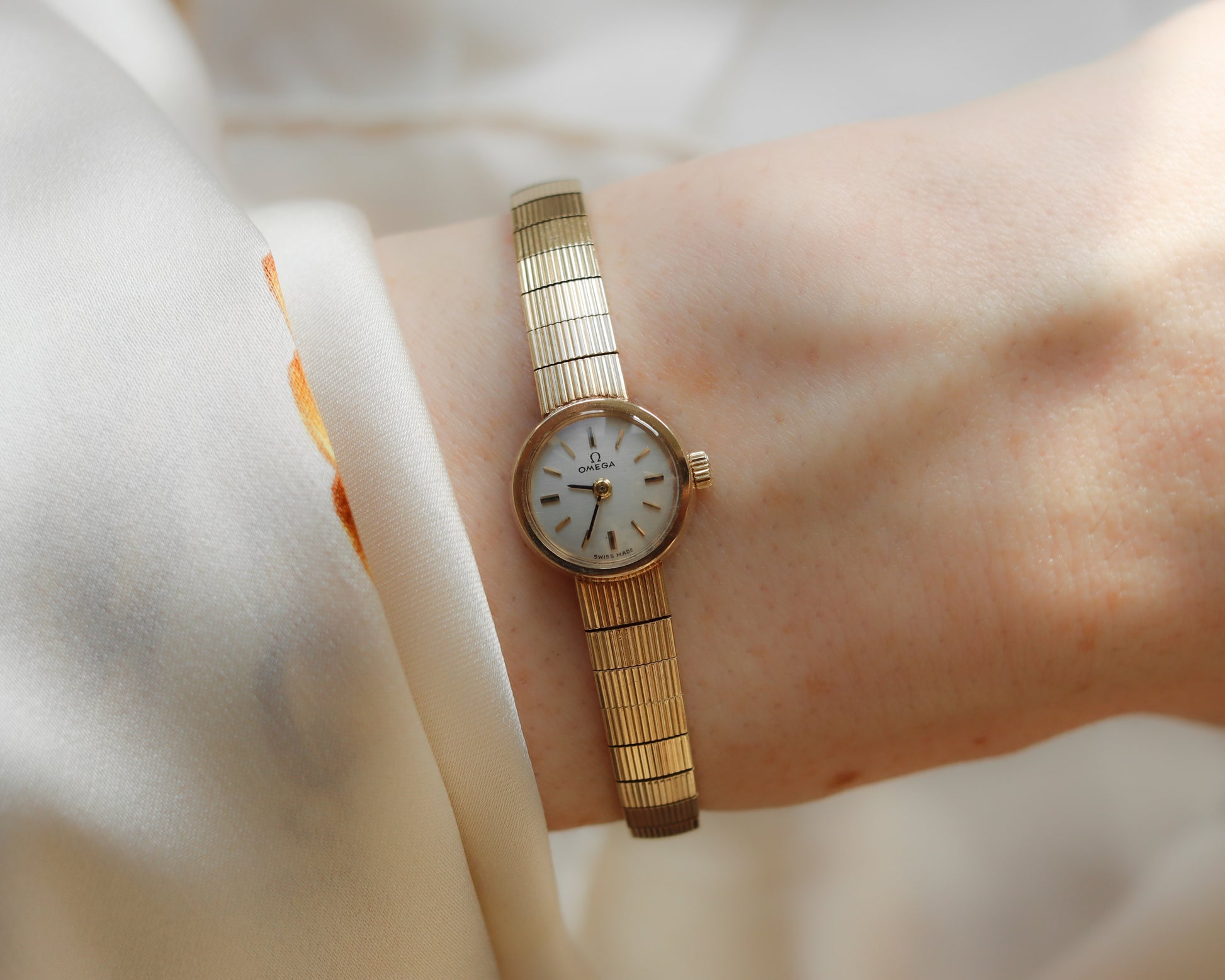 The integrated gold bracelet measures approximately 15cm in length and is finished with a signed Omega clasp, offering both comfort and security on the wrist. The combined weight of the watch and bracelet is 17.2 grams, giving the piece a reassuring gold presence while remaining refined and wearable.