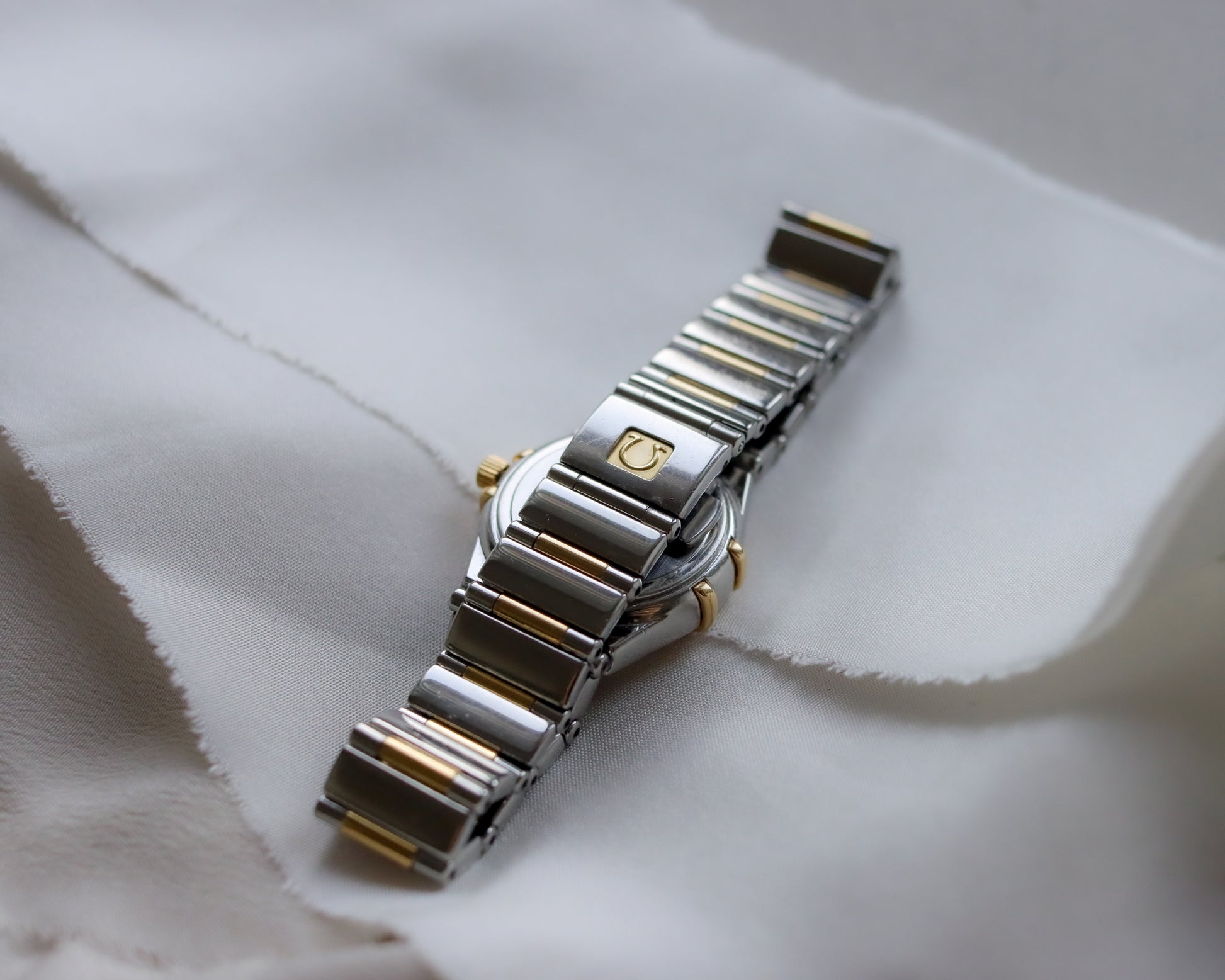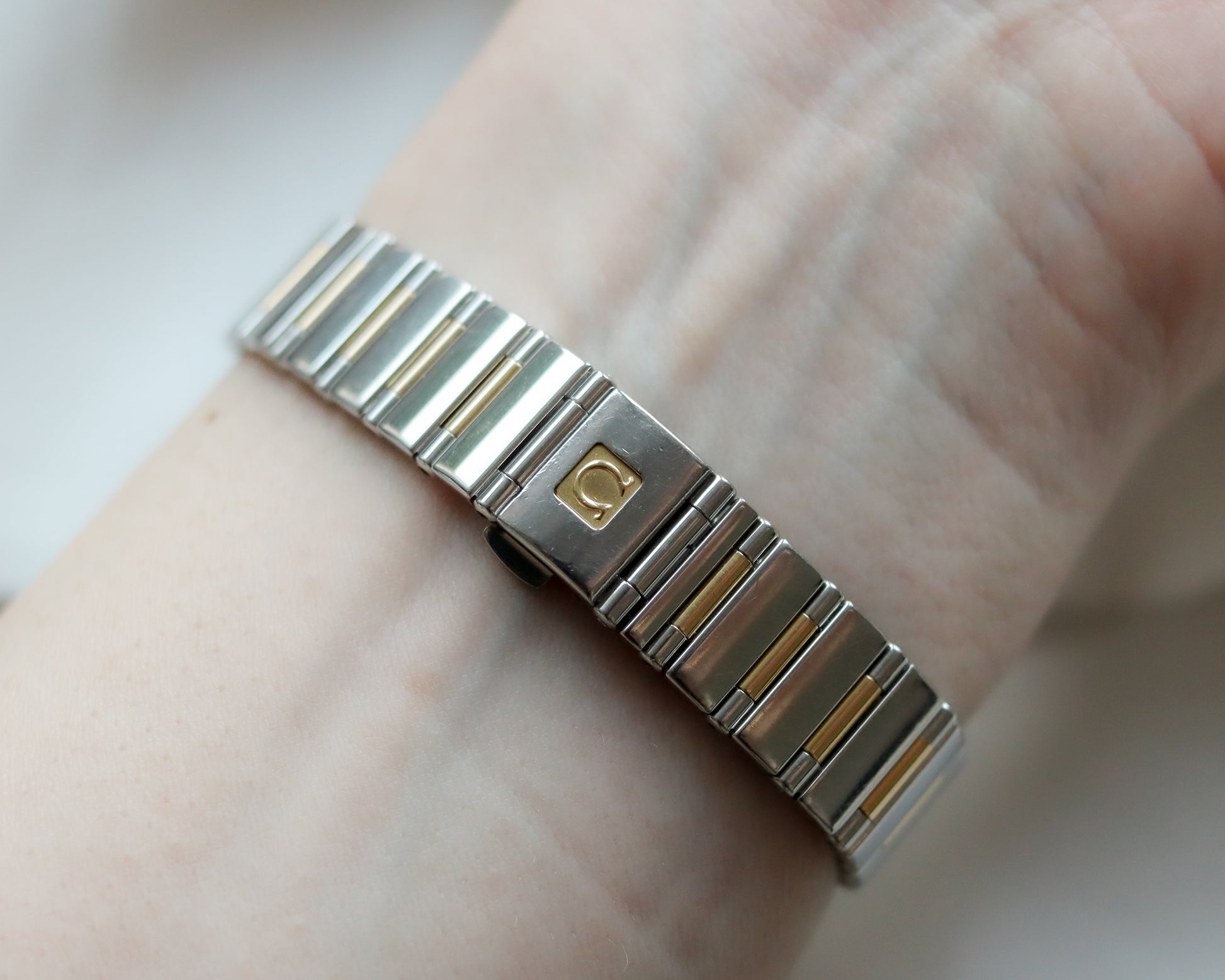 Powered by a reliable Omega Swiss quartz movement, this watch offers precision timekeeping with effortless everyday wearability. The integrated bracelet, formed with yellow gold bars and stainless steel links, is secured by an Omega deployment clasp and currently fits a wrist size of approximately 16.5cm.