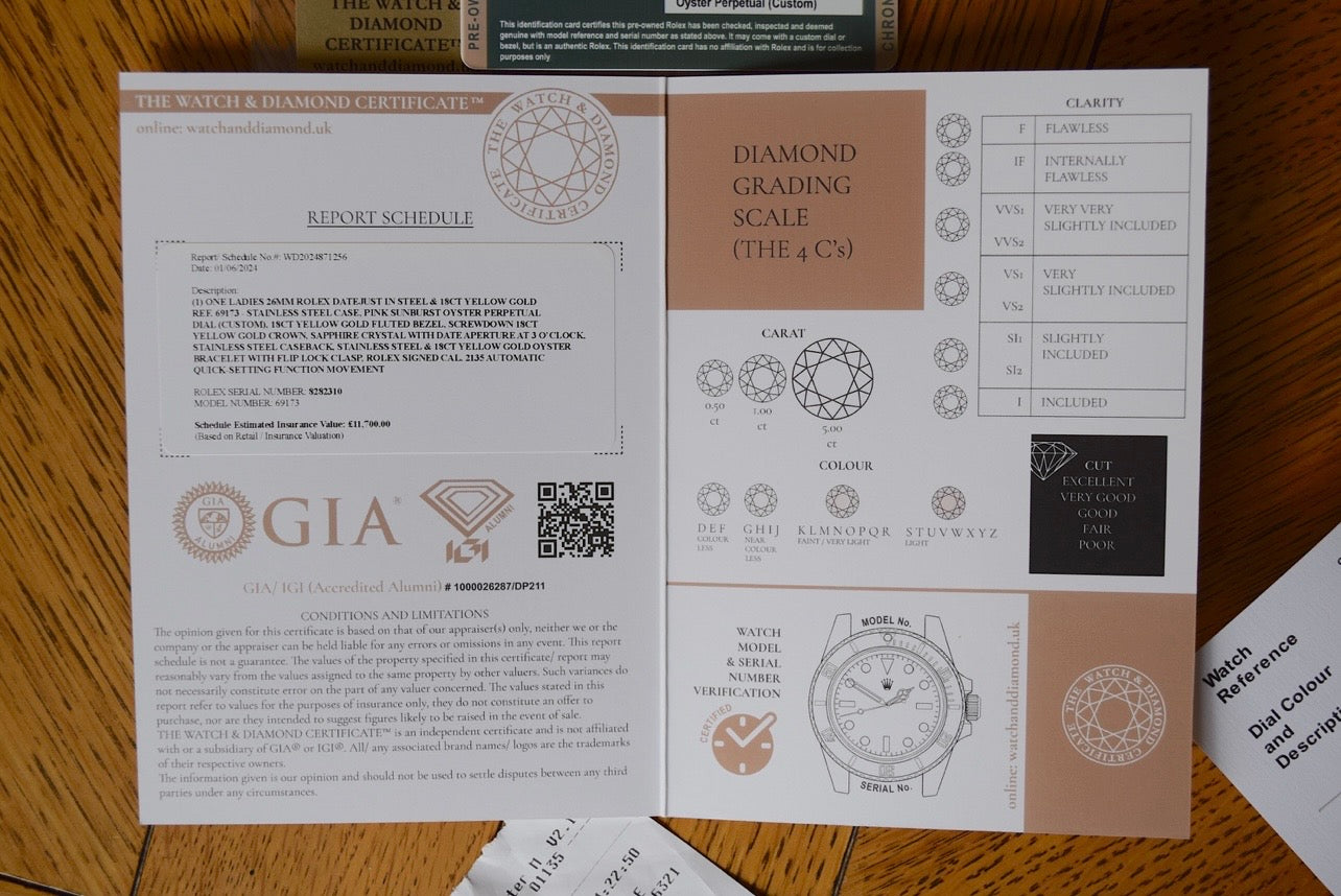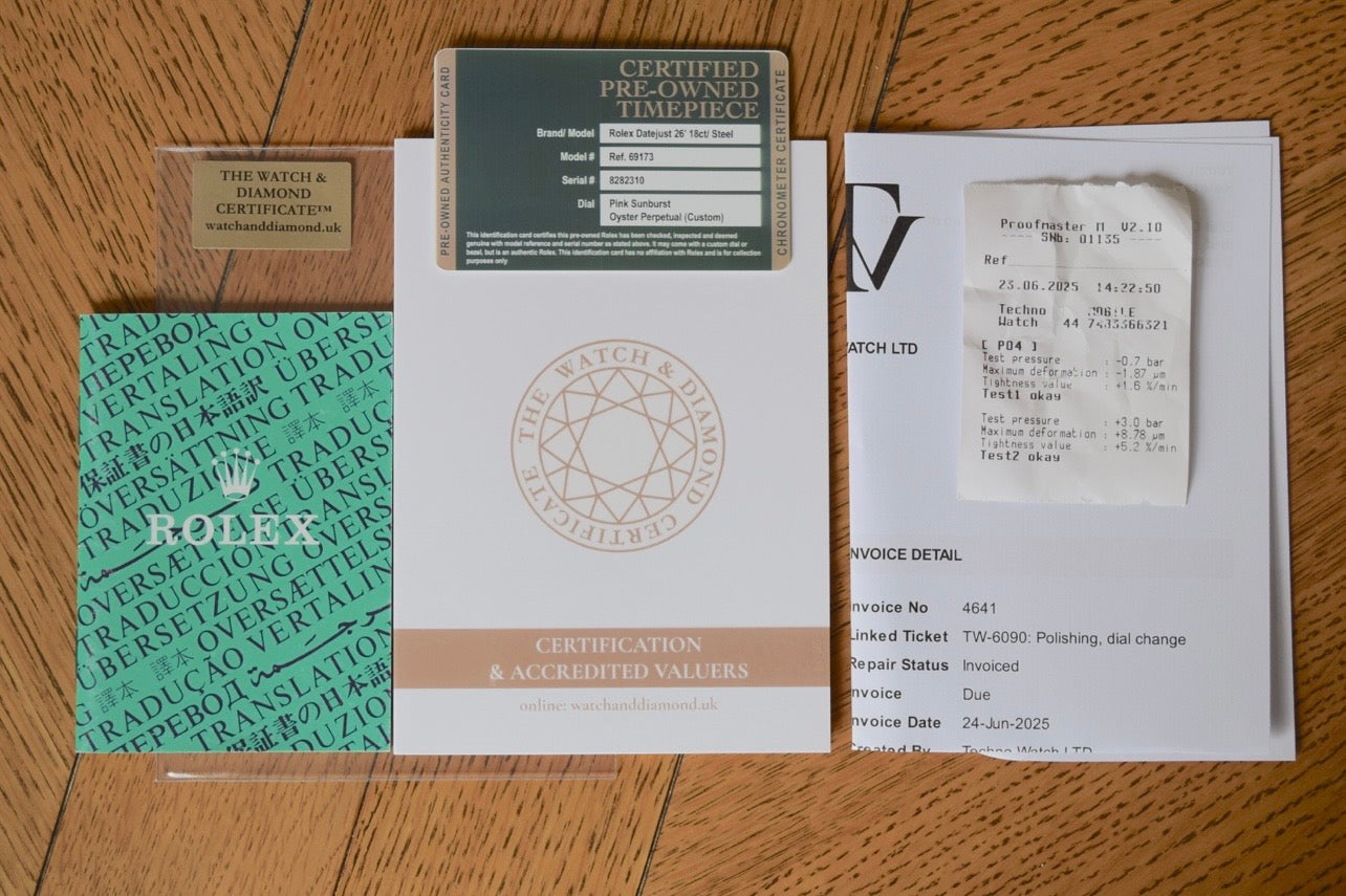 - Official Rolex chronometer certification booklet