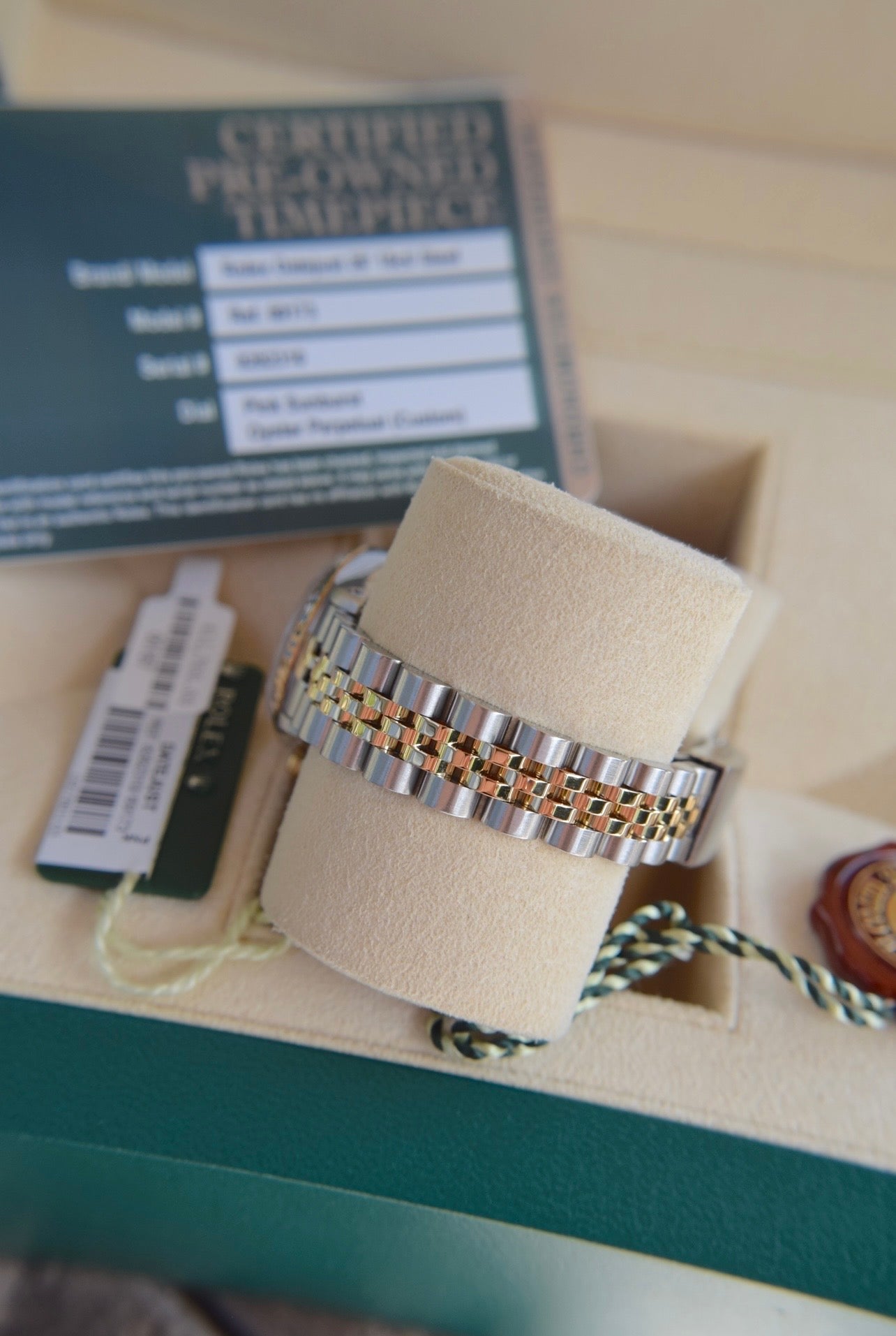 - Original Rolex green leather presentation box (cream suede interior)