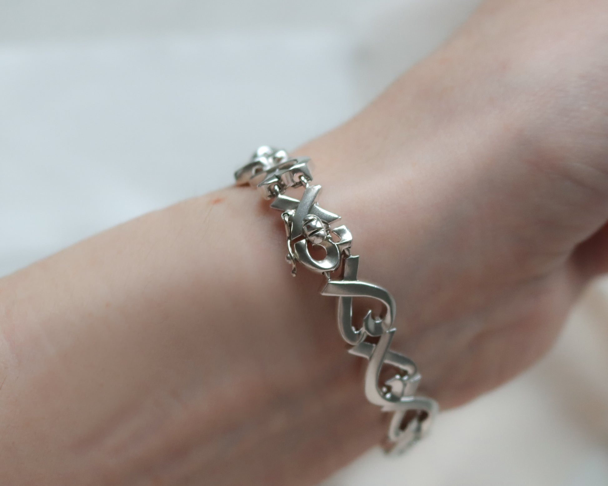 A beautiful and collectible Tiffany & Co. bracelet designed by Paloma Picasso, showcasing her iconic romantic style.