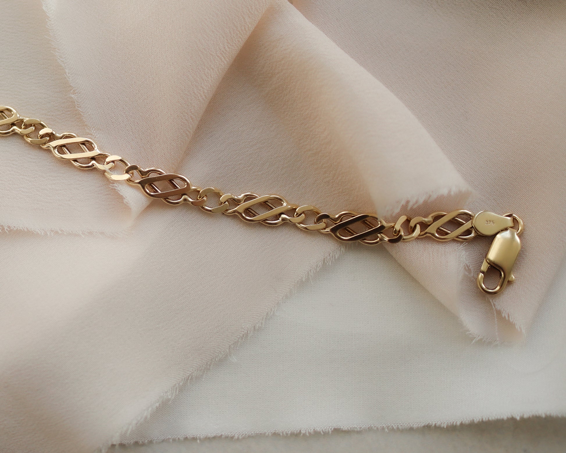 A beautifully crafted vintage 9ct gold bracelet featuring an elegant fancy-link design that catches the light beautifully.