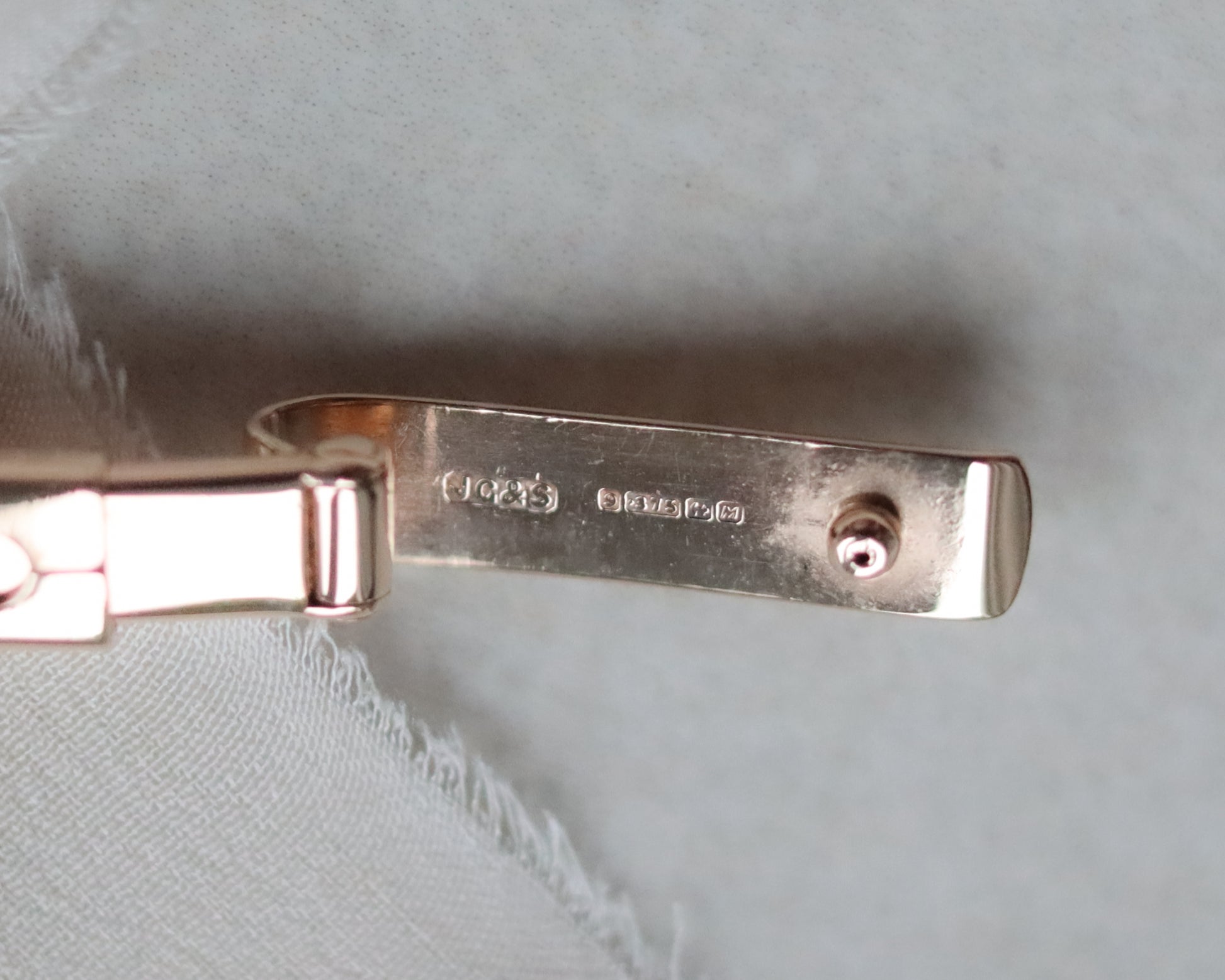 Clasp: 9ct gold, stamped Made in England